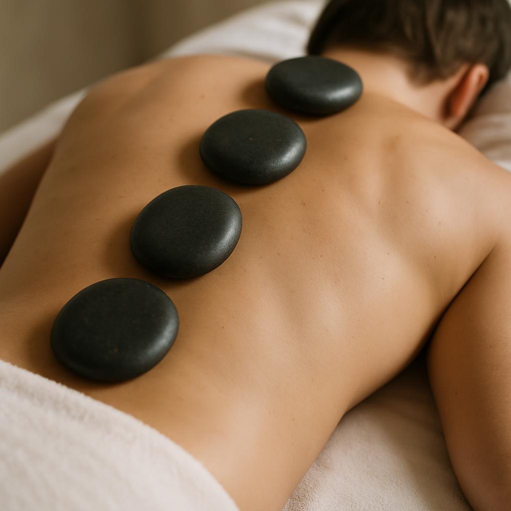 Ein wohltuendes energetisches Ritual mit warmen Steinen und ätherischem Lavendelöl.